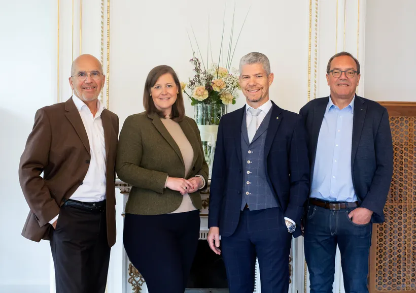 vlnr: Thomas Bitsche (Obmann Verein Villa Falkenhorst), Verena Burtscher (Geschäftsführerin Villa Falkenhorst), Thomas Schreiber (Vorstandsdirektor Sparkasse Bludenz), Arno Sprenger (Leiter Marketing Sparkasse Bludenz)