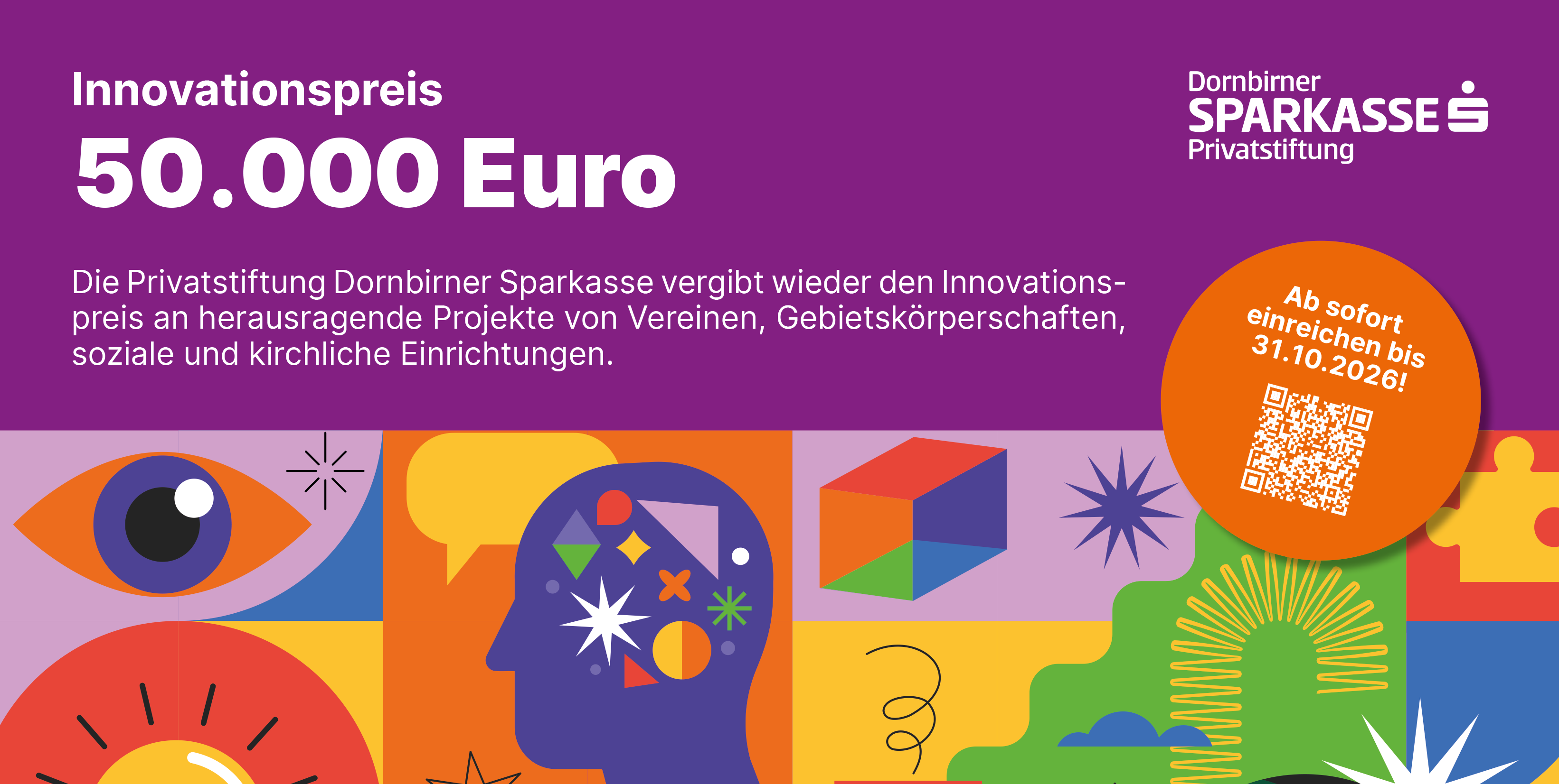 Die Privatstiftung Dornbirner Sparkasse möchte neue Entwicklungen in der Region fördern, gute Projekte für die Gesellschaft und das Gemeinwohl. Mit dem Innovationspreis können diese Projekte schneller verwirklicht werden. Der Preis wird 2026 zum dritten Mal ausgeschrieben.