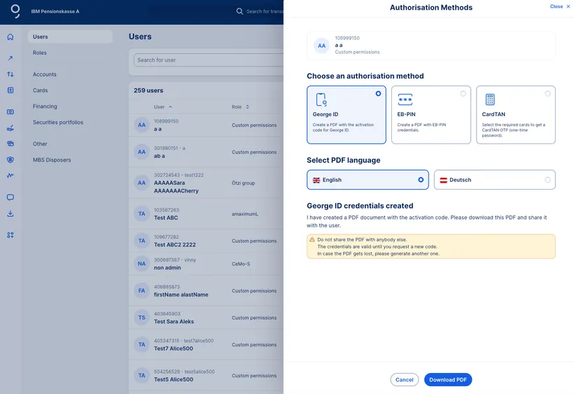 George ID for the computer: As an alternative to the George Business mobile app, you can also activate George ID for your desktop. You can confirm logins and transactions directly in the desktop app with your George ID PIN.