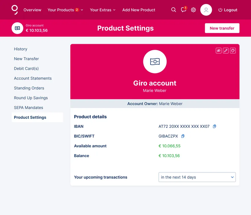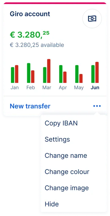 When you're managing many different accounts and cards, it can be difficult to find the right one at first glance. But it doesn't have to be that way. George not only allows you to show and hide accounts or cards in your overview, but also lets you name them in order to better distinguish them from each other. How exactly? Just keep reading and find out.