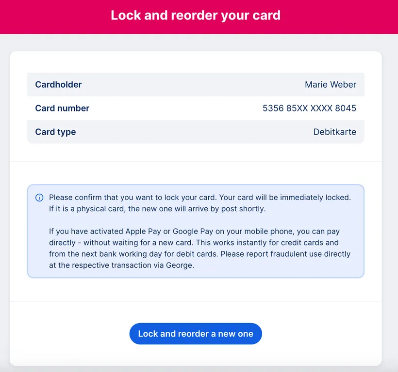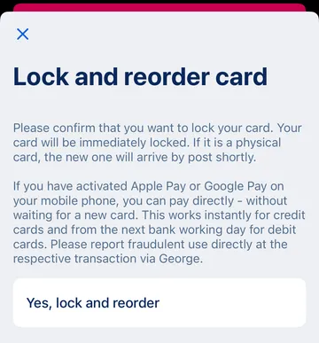 Sometimes life happens: Your debit card gets stolen, or you lose it in a moment of distraction. Either way, you want to make sure nobody can access or misuse your financial information. You can do that by immediately locking your debit card with George - in the app or web browser.
