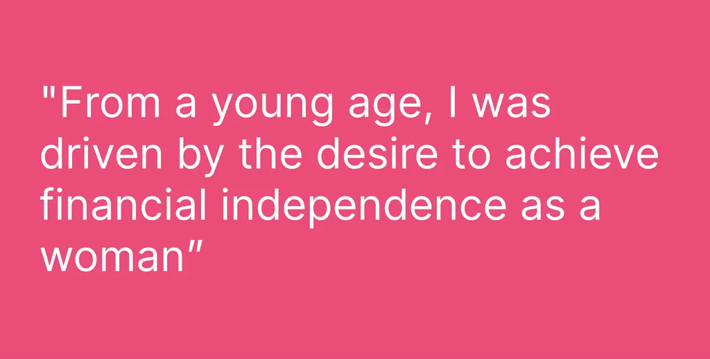 I have been interested in money since I was a child. My drive has always been to be financially independent as a woman. There were always working women in my family. I always wanted to be free and lead a good life: live in a nice home, enjoy life, and go on vacations.