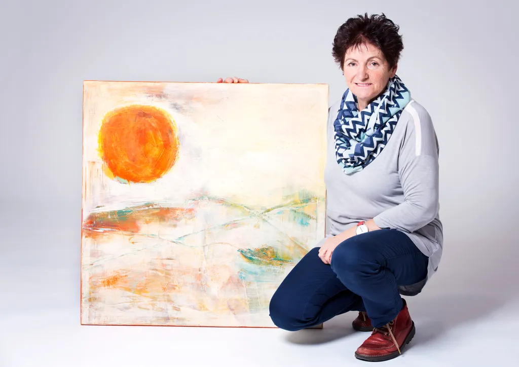 Mit ihrer Ausstellung in der Sparkasse Altenstadt möchte Maria Sönser gerne minderjährige Flüchtlinge unterstützen. Dazu spendet sie die Hälfte des Verkaufserlöses der Bilder.