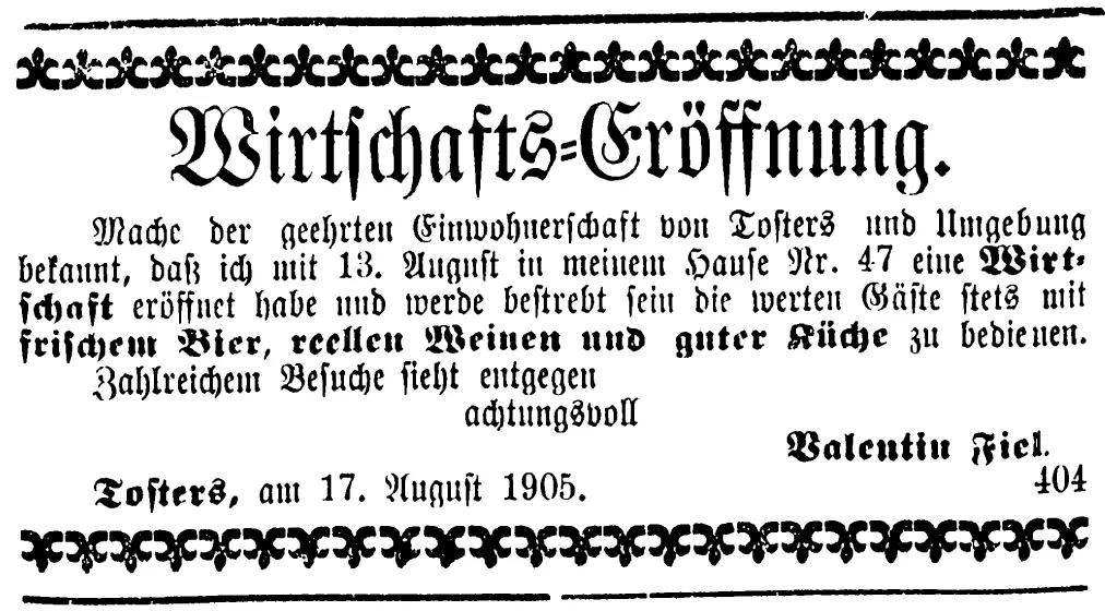 Mit diesem Inserat wurde 1905 über die Eröffnung informiert.