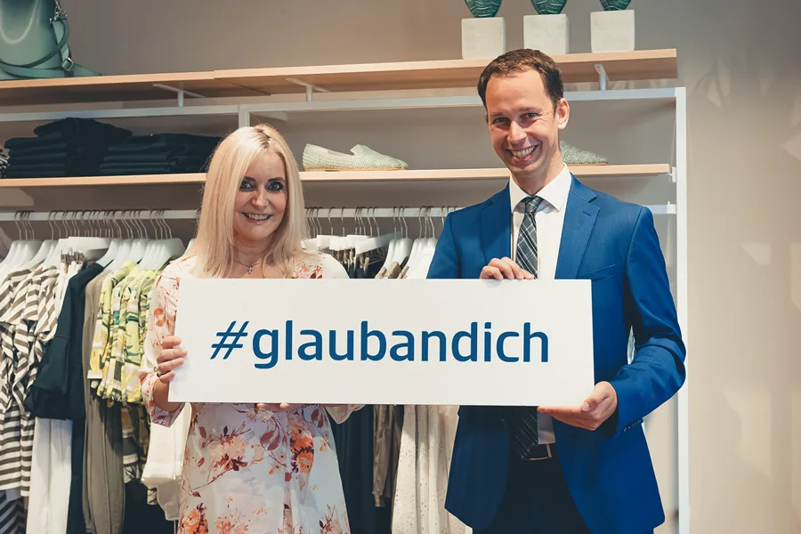 Elke Moos mit ihrem Kundenbetreuer Martin Bröll