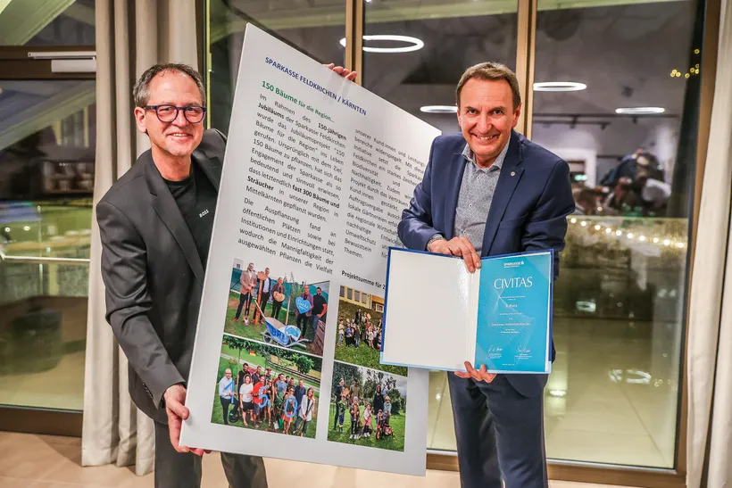 Feldkirchen, 13. März 2025 – Die Sparkasse Feldkirchen wurde zum ersten Mal für den renommierten CIVITAS AWARD nominiert und war live bei der feierlichen Verleihung dabei! Mit dem Projekt „150 Bäume für die Region“ haben hat sich das Geldinstitut unter die Top 8 von insgesamt 46 eingereichten Projekten geschafft.