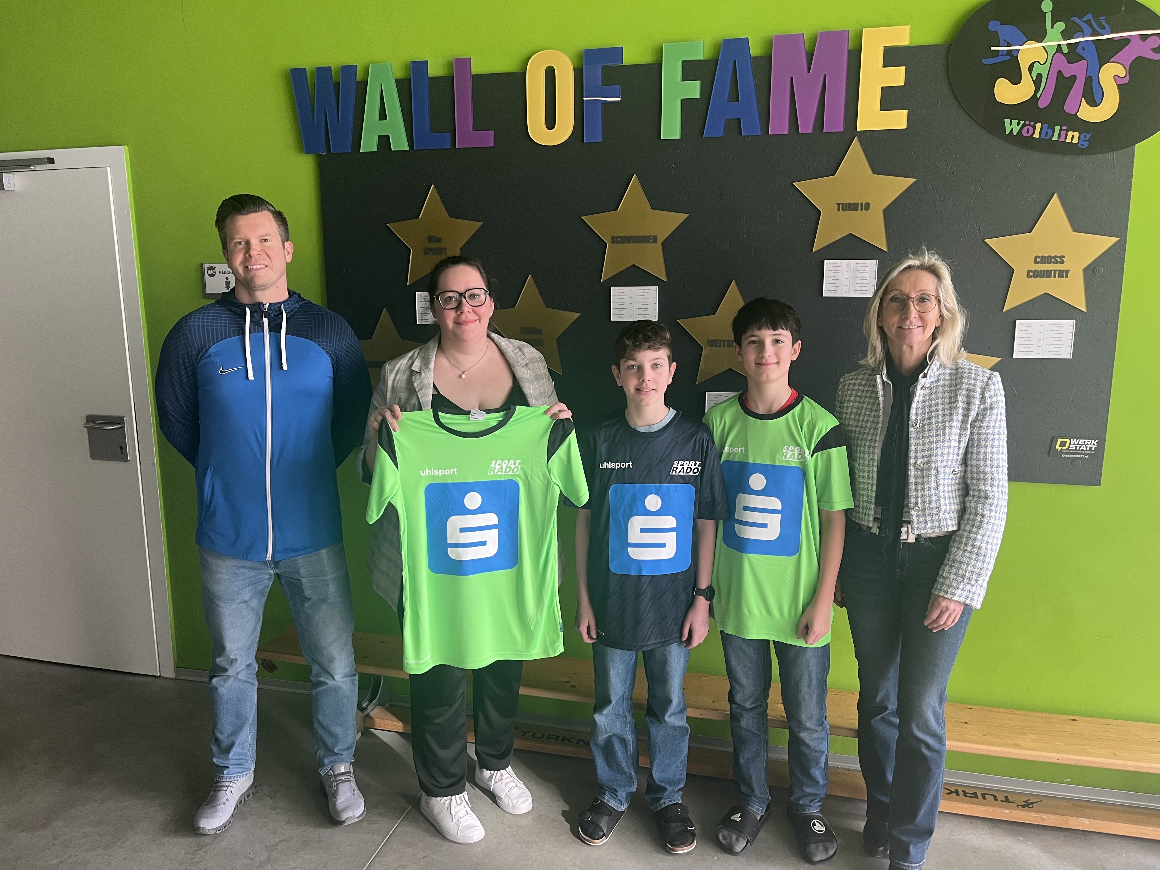 Im Rahmen eines Schulbesuches übergab Frau Jessica Kargl, Kundenbetreuerin der Sparkasse Herzogenburg Neulengbach, neue Trikots an die Schulmannschaft. Die Sparkasse unterstützt damit weiterhin junge Menschen in ihrer sportlichen Entwicklung und setzt – wie bereits in früheren Initiativen – ein Zeichen für regionale Nachwuchsförderung.