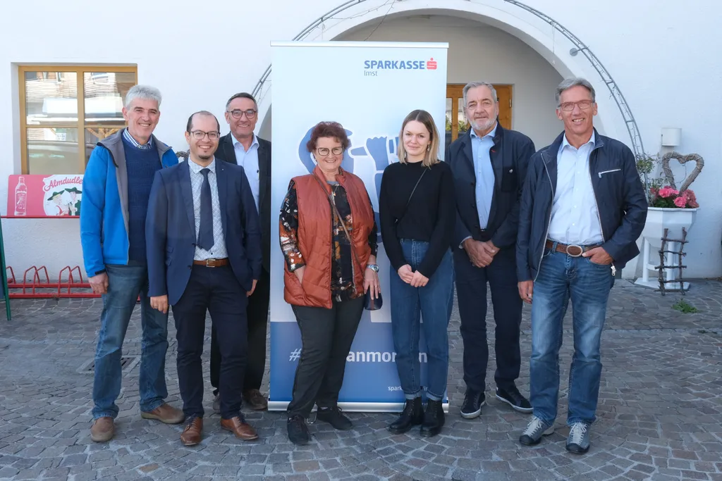 Zusammen für das Gemeinwohl (v.l.): Der Stanzer Bürgermeister Ferdinand Beer, Gerald Juen (Filialleiter Sparkasse Imst in Landeck), Pflegeverein-Obmann Johann Ladner, dessen Obmann-StvIn. Dr. Claudia Stadlwieser, Schriftführerin Eva Spiss, Franz Raich (Vorstandsvorsitzender der Sparkasse Imst Privatstiftung) und Kassier-Stellvertreter Günter Zangerle. | Bildnachweis: CN12 Novak
