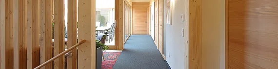 und Geschäftskund:innen, Bau- und Wohnberatung und Privatkund:innen - Öko-Wohlfühlfiliale in Holzriegelbauweise