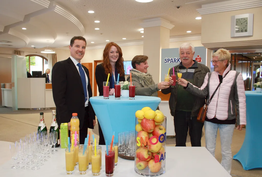 In frischer Optik präsentiert sich das Sparkassen-Servicecenter in der Kitzbüheler Bahnhofstraße. Nach Umbauende erwartet die Kunden auch eine Erfrischung in flüssiger Form. Eine Woche lang werden frisch gepresste Fruchtsäfte und vitaminreiche Mixgetränke kredenzt, die einen schmackhaften Vitaminkick in der herbstlichen Übergangszeit ermöglichen.
