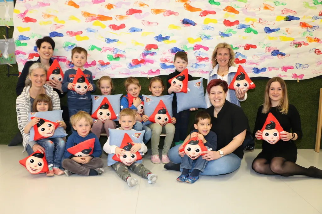 Die Kinder des Kindergarten Voglfeld können sich über neue therapeutische Massage-Kissen freuen, damit können sie noch entspannter den tollen Geschichten der PädagogInnen lauschen. Außerdem haben wir ganz viele Sparefroh-Kissen für die Kuschelecke mitgebracht.