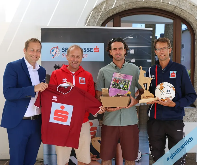 Westendorfs „Schülerliga-Ex-Teamchef“ Thomas Naschenweng (2.v.r.) mit Sparkasse-VDir. MMag. Thomas Hechenberger, MBA, Walter Zimmermann, und Gabriel Stöckl (v.l.n.r.)