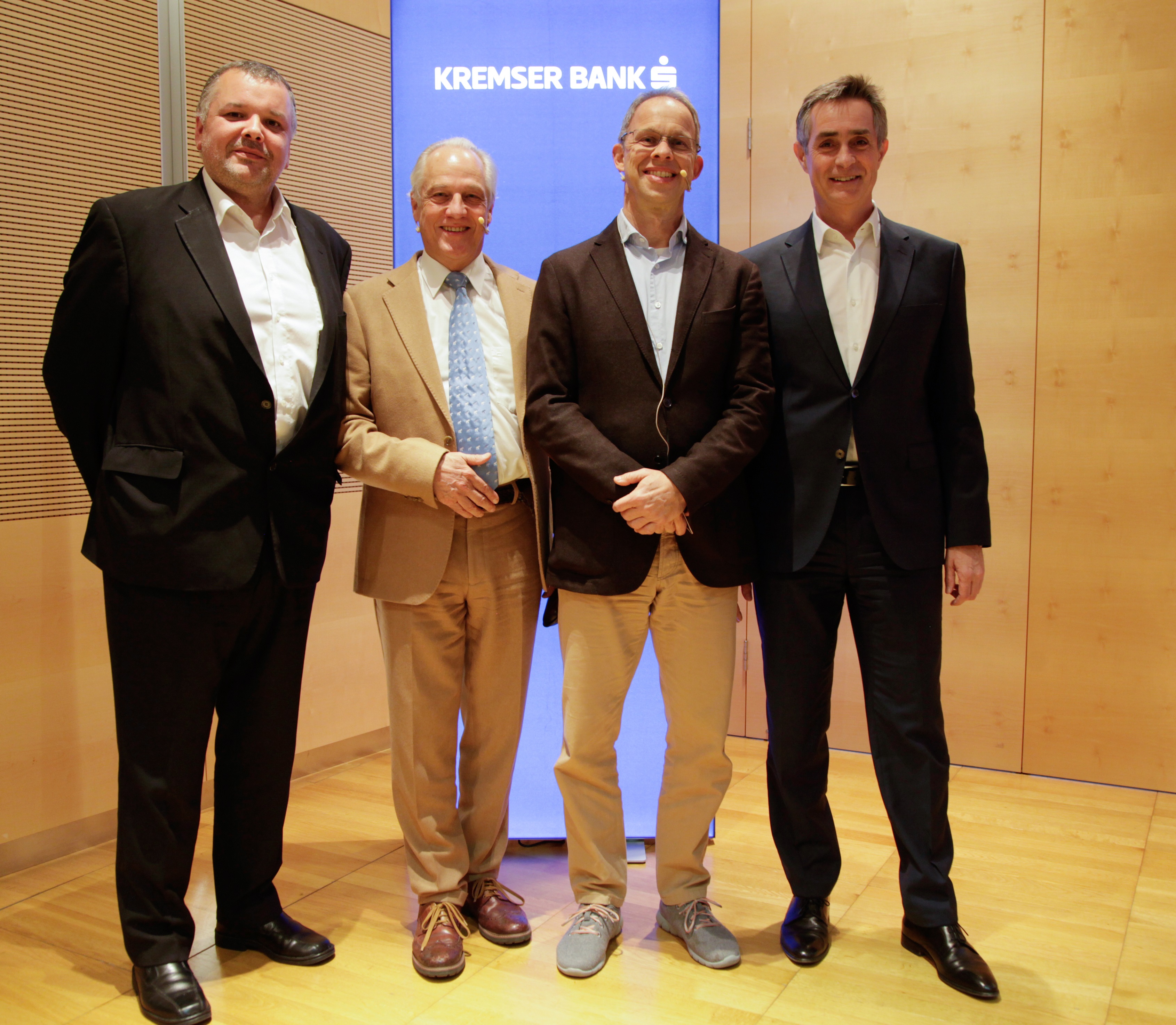 Foto: Bernhard Wutte (links) und Christian Hager (rechts) begrüßten Dr. Markus Elsässer und Lars Kolbe im Rahmen von kremsinvest
