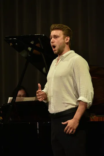 Besonders hervorzuheben an diesem speziellen Abend ist der junge Leipziger Tenor Gregor Reinhold, der im ersten Teil perfekt und fließend schön Johannes Brahms‘ Mainacht (op. 43(1) und im zweiten Teil die Arie des Mylio aus Le roi d’Ys von Eduardo Laló mit seiner wunderbaren Tenorstimme und mit hervorragender textlicher Artikulation und in sängerischem hohen Niveau interpretierte. Dieser junge Künstler wird sein Masterstudium nunmehr bei Dekan Prof. Hanser in Wien beginnen und wohl auch dort beenden. Von dieser schönen Tenorstimme wird zukünftig noch viel Schönes zu hören sein.