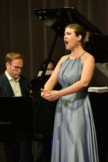 Alle TeilnehmerInnen überzeugten gekonnt mit ihren schönen Stimmen und Arien wie zum Beispiel mit Mozart‘s Zauberflöte mit der Arie des Sarastro „O Isis und Osiris“, prachtvoll gesungen vom Berliner Bass Karim Mayer (Student der UdK Berlin) oder Elise Kliesow, Sopran – ebenfalls aus Berlin, die die Arie des Ännchen aus Der Freischütz von C.M. v. Weber vollendet in Szene setzte.