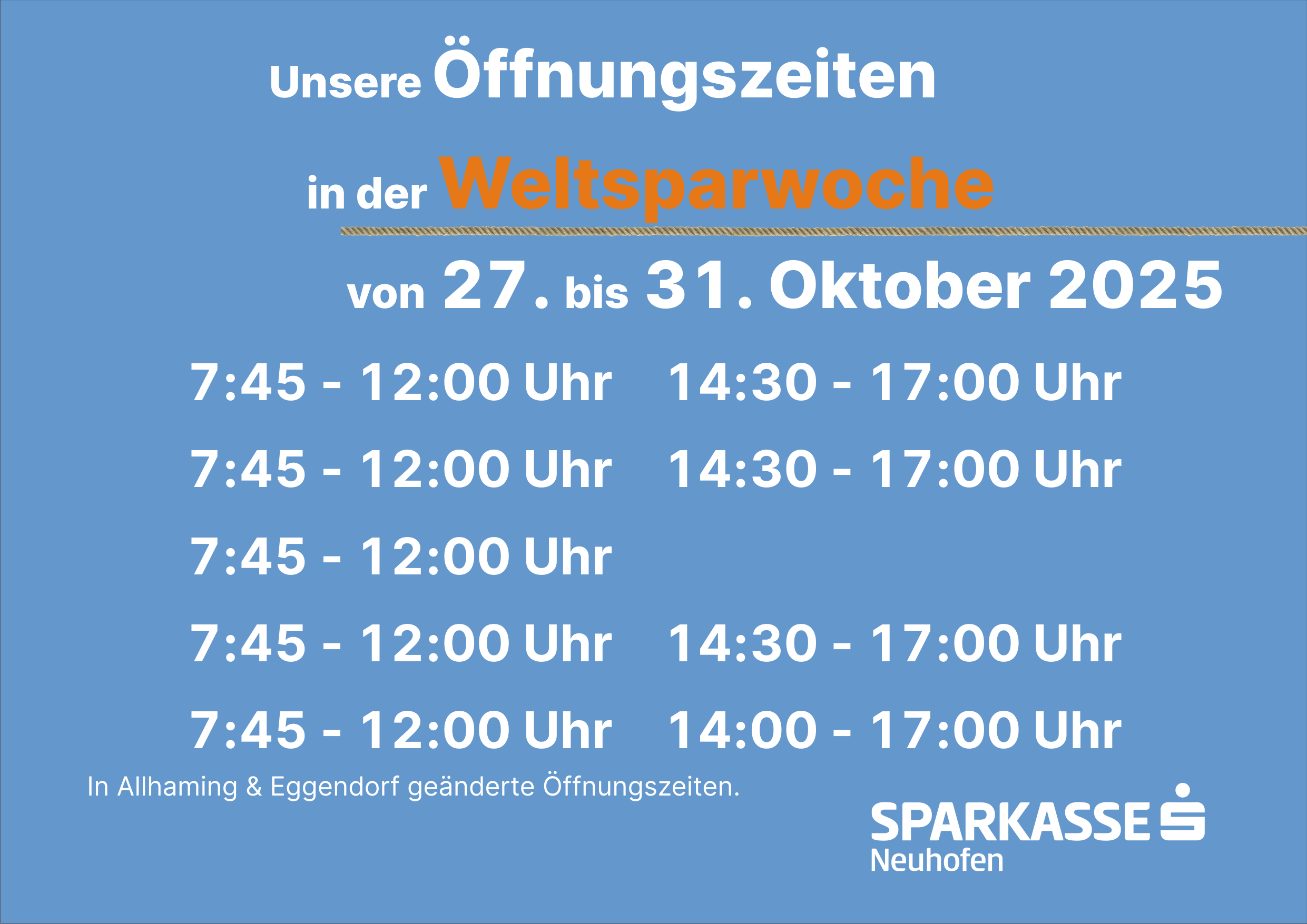 Das Doppeljubiläum – 100 Jahre Weltspartag und 125 Jahre Sparkasse Neuhofen – lädt uns dazu ein, stolz auf die Vergangenheit zurück zu blicken und zugleich positiv in die Zukunft zu schauen. Es ist ein Anlass, „Danke“ zu sagen: den Generationen von Kund:innen, die Vertrauen geschenkt haben, und den Mitarbeiter:innen, die mit Fachwissen, Engagement und Menschlichkeit diese Sparkasse prägen.