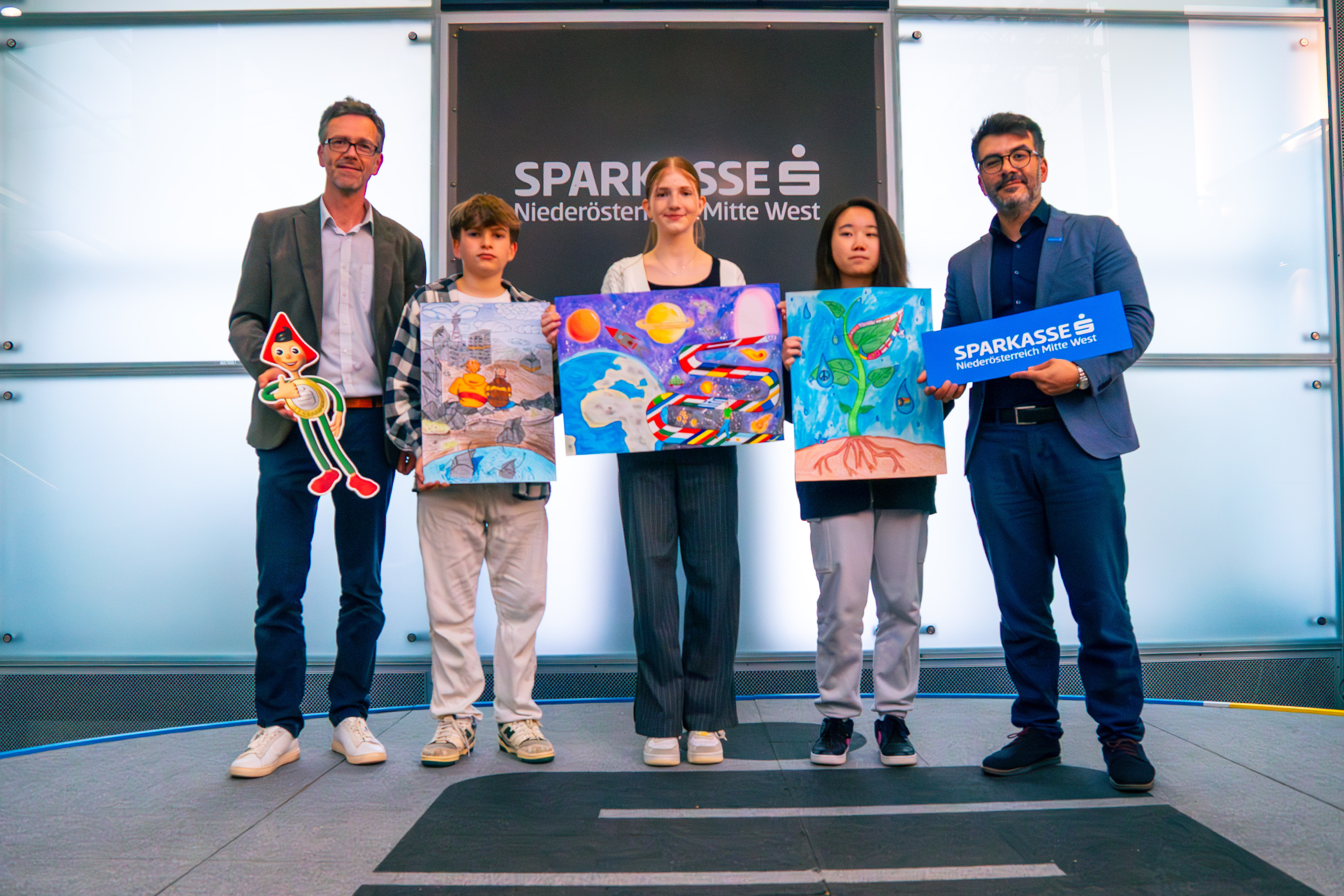 In diesem Jahr nahmen ca. 300 SchülerInnen aus 5 Schulen in St. Pölten am Wettbewerb teil. Die Sparkasse Niederösterreich Mitte West stellte für die GewinnerInnen tolle Sachpreise zur Verfügung und lud für die Siegerehrung alle SchülerInnen in Ihre Zentrale nach St. Pölten ein. Die Gesamtsiegerinnen waren Shuyao Wang, Frederick Heistinger und Viktoria Gwiss.