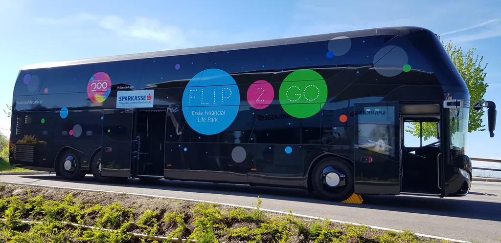 Erstmalig in Oberösterreich machte der FLiP2Go-Bus Station in Tragwein und Pregarten. Der Doppeldeckerbus mit sieben interaktiv-multimedialen Spielstationen vermittelt vor allem Kindern und Jugendlichen Finanzwissen für ein gesundes Geldleben.