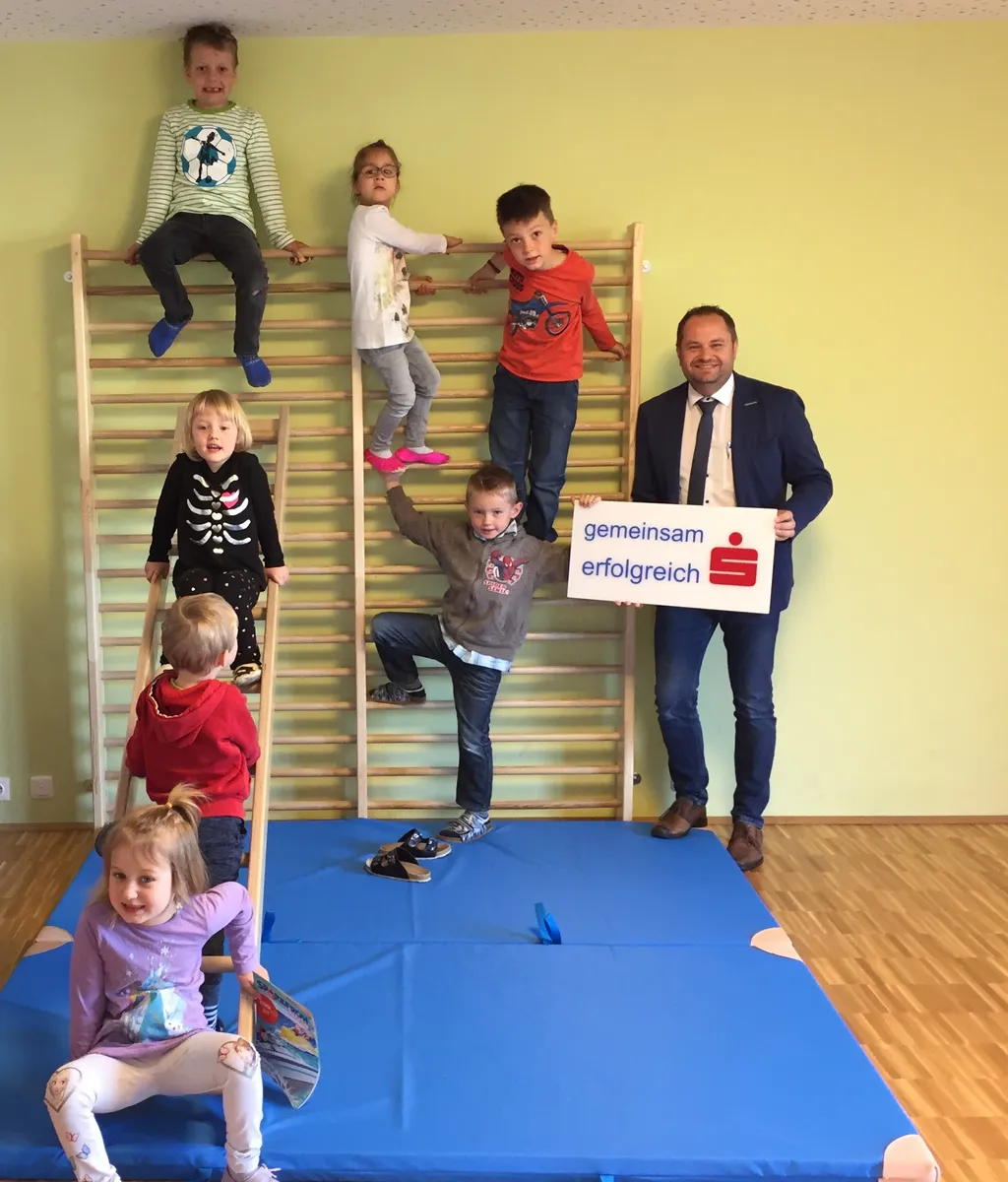 „Nun können die Kindergartenkinder das Klettern, Herunterspringen und Turnen voll ausleben“, so Filialleiter Wolfgang Friedl, der vor Ort die Kinder besuchte.