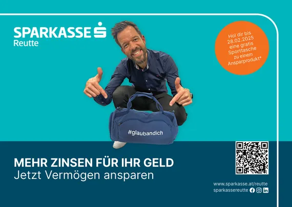 Bei der Veranlagung in Investmentfonds beachten Sie bitte, dass Wertpapiere neben den Chancen auf Kurssteigerungen auch Risiken enthalten. Die Kurse der Wertpapiere können gegenüber dem Einstandspreis steigen/fallen. Bei Kurssteigerungen kommt es zu Wertzuwächsen, Kursrückgänge führen zu Wertminderungen. Dies hängt insbesondere von der Entwicklung der Kapitalmärkte ab oder von besonderen, nicht vorhersehbaren Entwicklungen der jeweiligen Aussteller. Die Wertentwicklung der Vergangenheit lässt keine Rückschlüsse auf die zukünftige Entwicklung zu. Das Veranlagungsrisiko trägt der Versicherungsnehmer. GISA-Zahl: 27506943. Die Sparkasse Reutte AG ist vertraglich gebundener Versicherungsagent der WIENER STÄDTISCHE VersicherungAG Vienna Insurance Group und vermittelt ausschließlich Produkte dieser Versicherung. Sie stützt ihren Rat nicht auf eine umfassende Marktuntersuchung und erhält für vermittelte Versicherungsverträge Provisionen, die in den Versicherungsprämien enthalten sind. Weitere Produktinformationen entnehmen Sie bitte dem jeweiligen den Vorgaben der EU entsprechenden Basisinformationsblatt, das Ihnen dabei hilft, Art, Risiko, Kosten sowie mögliche Gewinne und Verluste dieses Produkts zu verstehen. Sie erhalten das Basisinformationsblatt bei Ihrem Berater sowie auf der Webseite www.s-versicherung.at.