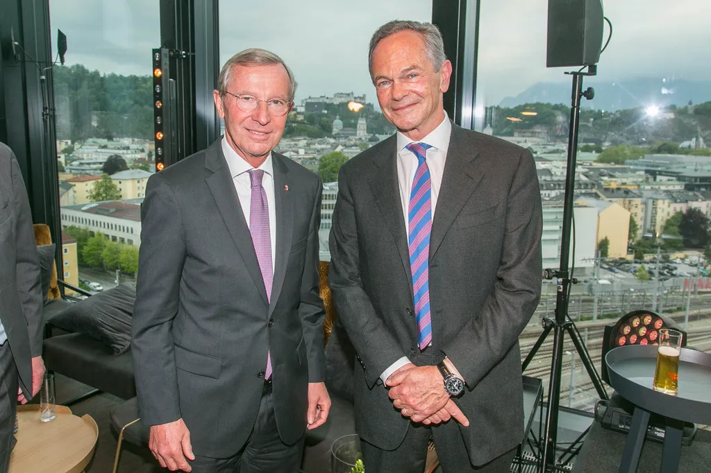 Mit einer Zukunftsperspektiven-Veranstaltung und Führungen durch das neue Business Quartier im PERRON-Gebäude direkt beim Salzburger Hauptbahnhof eröffnete die Salzburger Sparkasse ihr neues Zuhause für alle Betriebseinheiten und das Firmenkundenzentrum der Stadt Salzburg. Der Höhepunkt des Abends war ein Talk mit Landeshauptmann Wilfried Haslauer und Erste Group-Chef Andreas Treichl in der Panoramabar des Hotelturms. Dazu geladen hatten die Sparkassen-Vorstände Christoph Paulweber und Markus Sattel gemeinsam mit dem Seebrunner Kreis-Kurator Harald Ronacher. Auch Bürgermeister Harald Preuner und die Spitze der Erste Bank Österreich mit Stefan Dörfler und Thomas Schaufler waren zu Gast in diesem neuen Ambiente mit Weitblick über die ganze Stadt Salzburg.