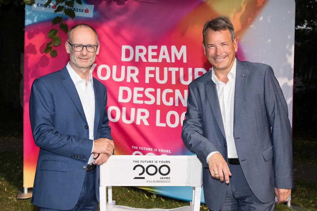 Sparkassen-Vorstandsduo Christoph Paulweber und Markus Sattel luden zur Jubiläumsfeier