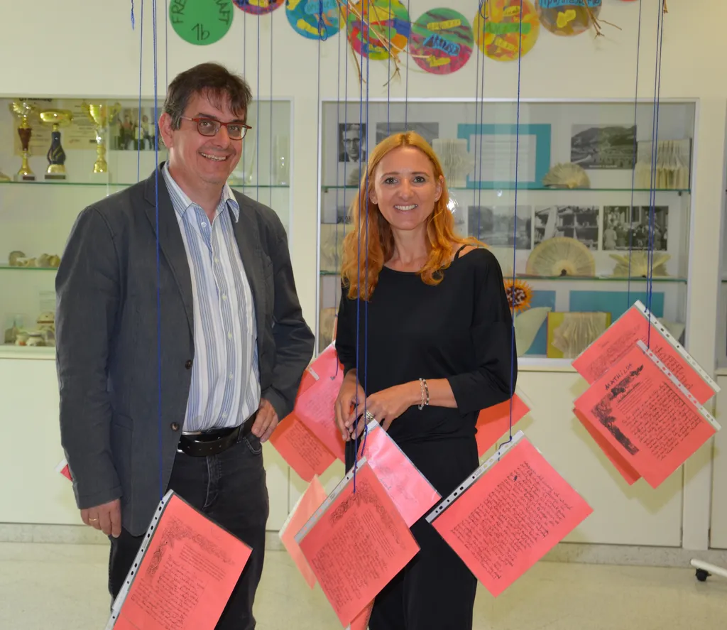 Peter Angerer, Volksschuldirektor der Volksschule Hans-Sachs in Schwaz und Sylvia Hauser (Marketing Sparkasse Schwaz)