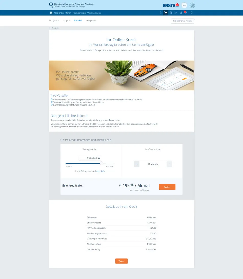 Zweite Neuerung in George: Der Online-Kredit
