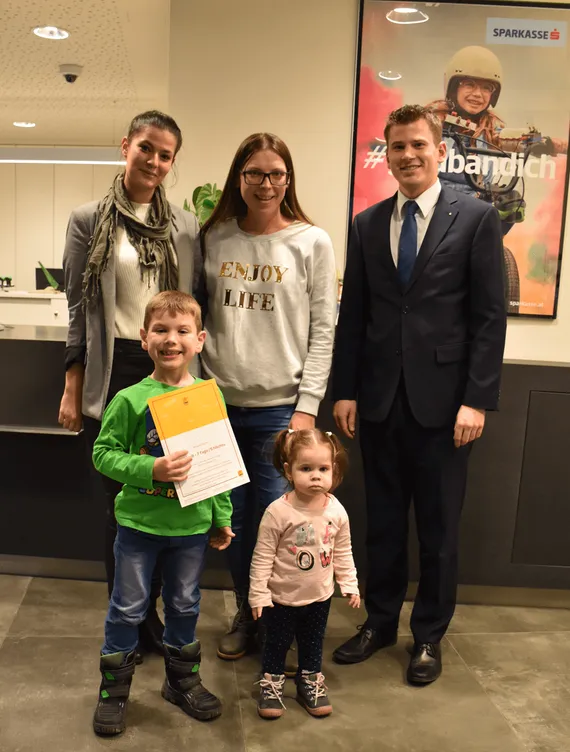 Frau Marija Vidovic nahm in der Weltsparwoche am Gewinnspiel der Sparkasse teil und wurde als Gewinnerin gezogen. Die Freude war groß, als ihr der Geschäftsstellenleiter der Sparkasse in der Swarovskistraße, Florian Siebenhofer und Kundenbetreuerin Nada Todorovic den Gutschein für einen kostenlosen Urlaub überreichten. Sie und ihre Kinder Ana und Leon dürfen sich auf einige tolle Tage freuen. „Dass wir Ende des Jahres von der Sparkasse so eine schöne Nachricht erhalten, ist einfach großartig. Mit dem Einlösen des Gutscheins warten wir bis zum Frühling, vermutlich zieht es uns in die Bundeshauptstadt“, so Marija Vidovic.