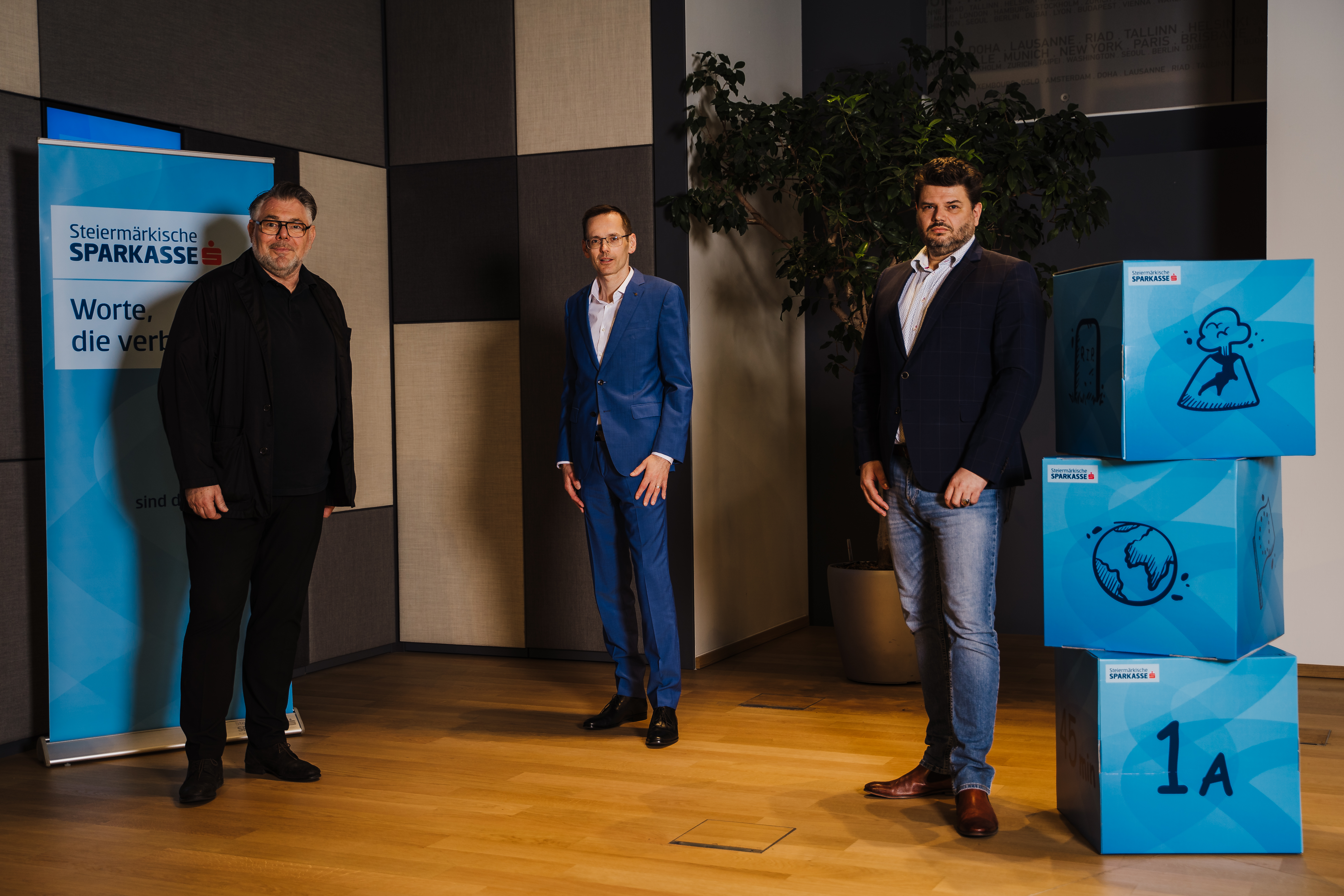 V.l.: Eberhard Schrempf, Geschäftsführer der Creative Industrie Styria, Oliver Kröpfl, Vorstandsmitglied Steiermärkische Sparkasse und Uwe Mayer, Geschäftsführer mayermayer