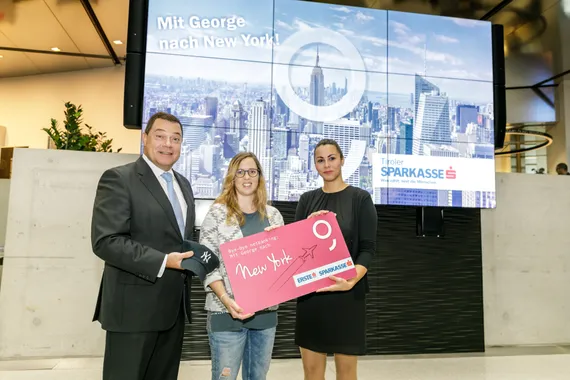 Das Glück entschied sich für eine Tirolerin. Lis Thommes ist Kundin der Tiroler Sparkasse in Innsbruck – übrigens bereits seit ihrer Studienzeit. Die inzwischen praktizierende Ärztin freut sich nicht nur über den Hauptgewinn, sondern ist zudem mit ihrem Wechsel zum modernsten Banking sehr zufrieden. „Ich kann George nur jedem weiterempfehlen. Das Tool ist sehr übersichtlich, klar und modern gestaltet - sehr funktional und benutzerfreundlich“, schwärmt die gebürtige Luxemburgerin, die sich auch schon wahnsinnig auf die Reise nach New York freut. „Ich war noch nie in den USA und wollte schon immer einmal den Big Apple besuchen. Noch weiß ich gar nicht, was ich mir alles anschauen werde. Der Sonnenuntergang vom Rockefeller Centers soll ein sehr beeindruckendes Erlebnis sein soll. Den werde ich mir bestimmt anschauen“, so die glückliche Gewinnerin bei der Preisübergabe.