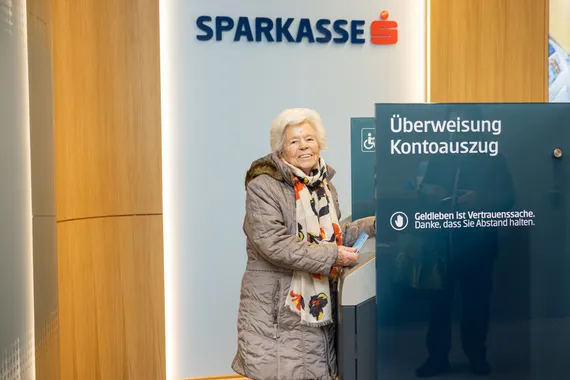 Selbst freundlich angebotene Hilfe von Sparkassen-Mitarbeiter:innen lehnt sie ab. „Es ist ja alles gut beschrieben. Man braucht ja nur zu lesen“, erklärt Margareta P. Hans Unterdorfer, Vorstandsvorsitzender der Tiroler Sparkasse, bei einem Treffen in der Beratungsfiliale ohne Kassenschalter in Pradl.