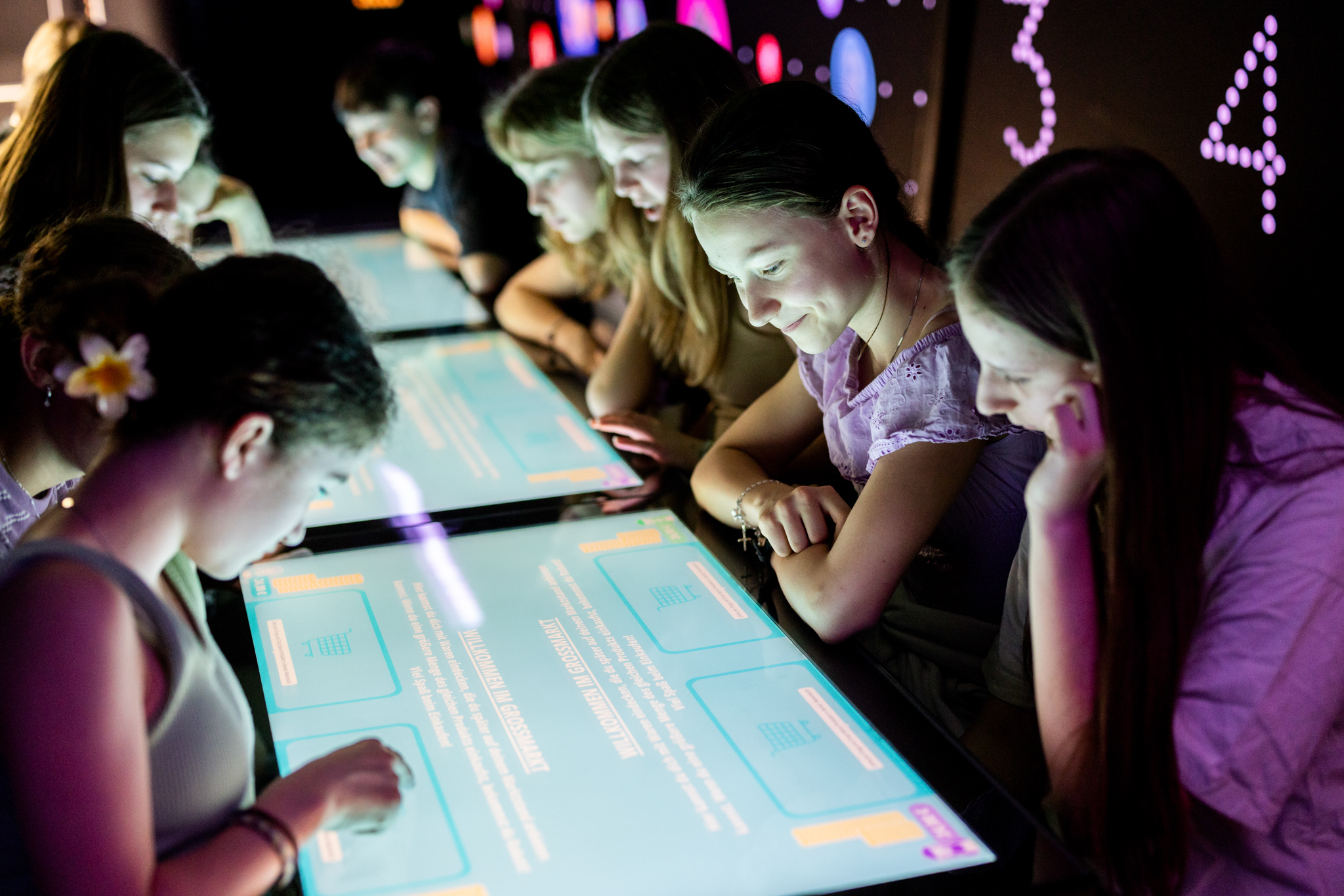 In dem umfunktionierten Doppeldeckerbus finden Schüler:innen sieben interaktive Spielstationen, die Finanzwissen und den richtigen Umgang mit Geld vermitteln sollen.